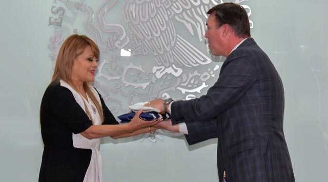 Atizapán de Zaragoza, Méx.– Tras exponer su interés por consolidar la hermandad entre el gobierno local y la Ciudad de Sanford, Carolina del Norte, EUA, para impulsar temas educativos, industriales y comerciales, la presidenta Municipal, Ruth Olvera Nieto, recibió de manera simbólica las llaves de la ciudad estadunidense en manos de su alcalde Tommy Chester Mann III.
