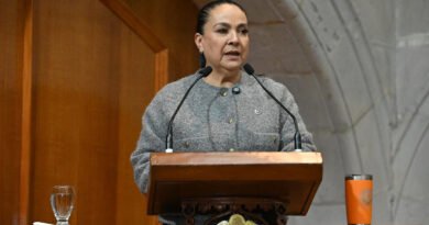 Seguridad Pública hizo alusión a Mictlantecuhtli, entidad mexica conocida como “el señor del lugar de los muertos”. La representación estuvo acompañada de veladoras y luces neón. El altar del DIF, ataviada con un arco de flores, mostró consignas en contra de la violencia de género.