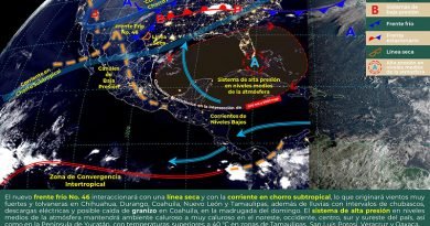 Valle de México: Cielo despejado durante la mañana con incremento de nublados por la tarde y probabilidad de lluvias aisladas en el Estado de México y sin lluvia en la Ciudad de México. Viento del norte y noreste de 10 a 25 km/h con rachas de 40 km/h. En la Ciudad de México se pronostica una temperatura máxima de 27 a 29 °C y mínima de 12 a 14 °C. Para la capital del Estado de México, temperatura máxima de 25 a 27 °C y mínima de 5 a 7 °C.