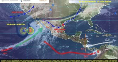 Pacífico Sur: Cielo nublado con lluvias puntuales intensas en Chiapas (norte), muy fuertes en Oaxaca y fuertes en Guerrero, las cuales se acompañarán de descargas eléctricas y posible caída de granizo. Ambiente caluroso en zonas costeras y viento de componente norte con rachas de 70 a 80 km/h en el Istmo y Golfo de Tehuantepec (costas de Oaxaca y Chiapas).