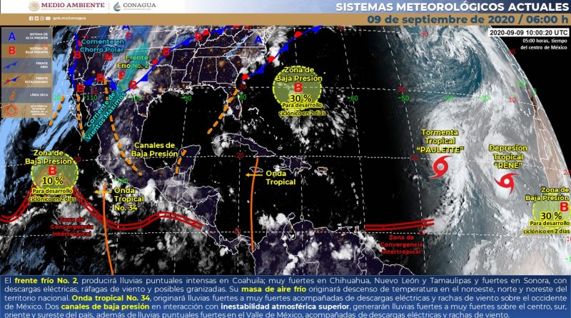 Pronóstico de precipitación para hoy 9 de septiembre de 2020: