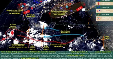 Un canal de baja presión se extenderá sobre el sureste del país, interaccionará con las bandas nubosas generadas por el Ciclón Tropical «Sally» y con la entrada de humedad proveniente del Océano Pacifico y Mar Caribe, ocasionarán lluvias fuertes a muy fuertes en la Península de Yucatán, con puntuales intensas en Chiapas y Oaxaca.