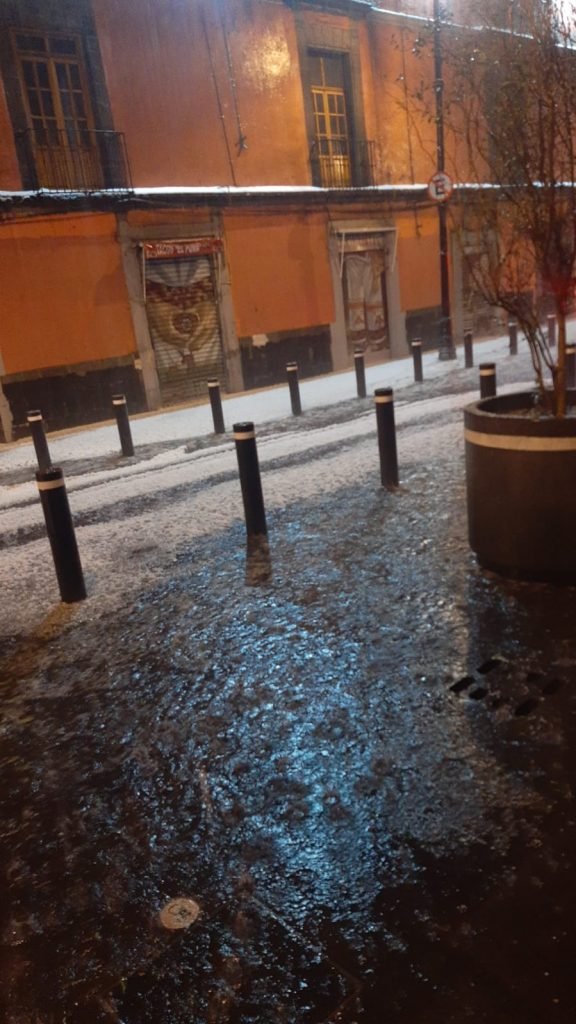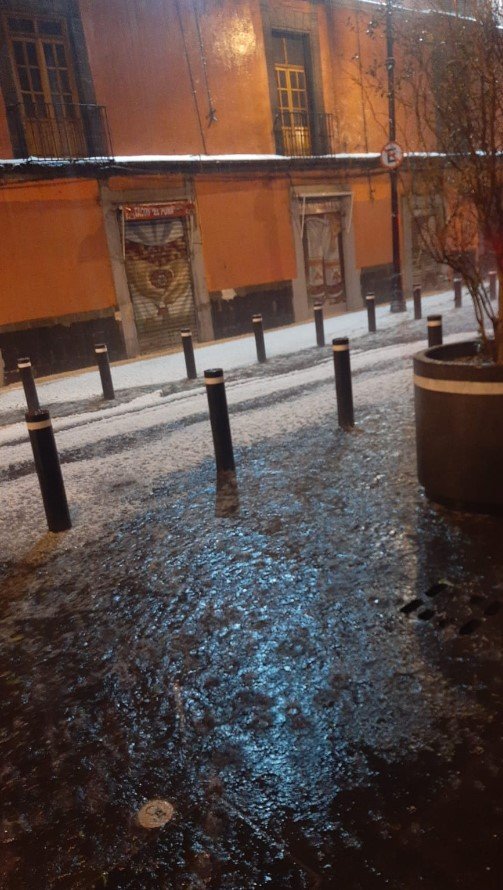 Colapsa estructura que soportaba la techumbre del una parte del Templo Mayor en la CDMX. La fuerte granizada de esta tarde provocó el suceso dejando además, caos en todo el primer cuadro de la capital del país, así como en otros puntos de esta.