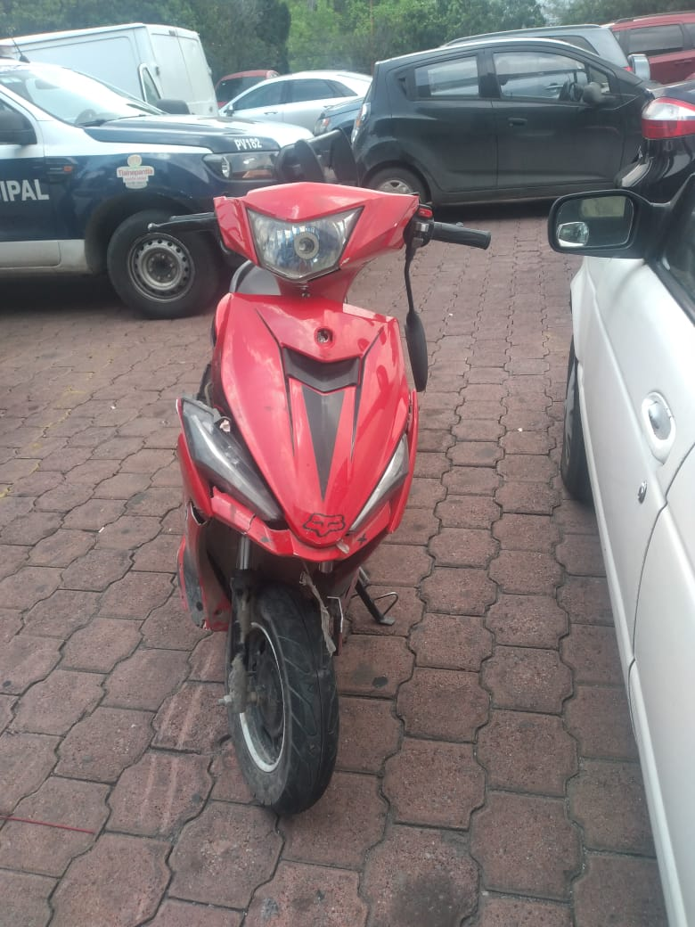 Durante un operativo de vigilancia en la colonia Constitución de 1917, policías municipales atendieron la denuncia de un ciudadano sobre un sujeto a bordo de una motoneta roja que cometía robos en esa comunidad. Los elementos de seguridad localizaron al sujeto, se inició la persecución, el sospechoso derrapó y dejó abandonado el vehículo que fue trasladado al Ministerio Público.