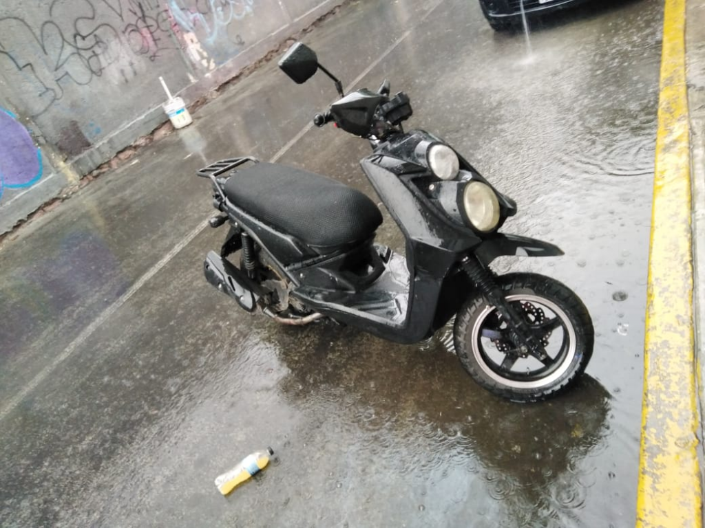 En la colonia Prensa Nacional, elementos de seguridad atendieron un reporte de robo con arma de fuego en progreso en una tienda de vinos y licores. Al notar la cercanía de las unidades policíacas los asaltantes emprendieron la huida a pie y dejaron abandonada una motoneta negra sin placas, la cual fue trasladada a la Fiscalía General de Justicia del Estado de México.