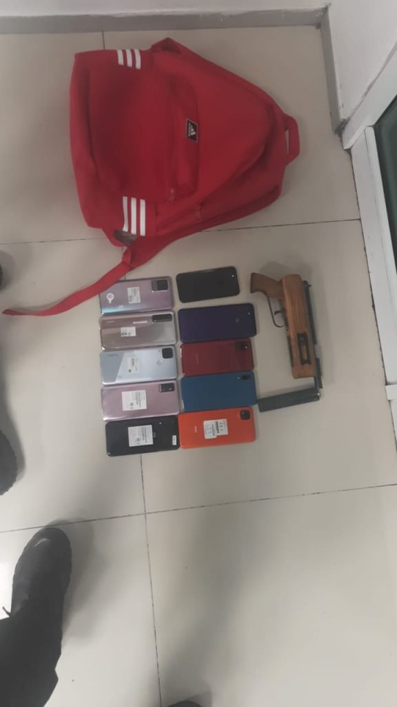 Los policías municipales, en coordinación con policías estatales y agentes de la Fiscalía de Justicia de la entidad, realizaron cortes de circulación en vía Morelos y lograron detener a tres ocupantes de la camioneta combi, que llevaban una mochila con 10 teléfonos celulares y el arma de fuego que supuestamente utilizaron para cometer el robo.