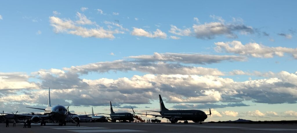 Bajo un clima cálido y cielo despejado, arribamos en un impresionante avión de la Fuerza Aérea Mexicana con capacidad para 176 pasajeros a la conocida Base Aérea Militar No. 11. Allí, presenciamos la ceremonia protocolaria que contó con la presencia de altos mandos militares y miembros del Congreso de la Unión, integrantes de las Comisiones Legislativas de la Secretaría de la Defensa Nacional.