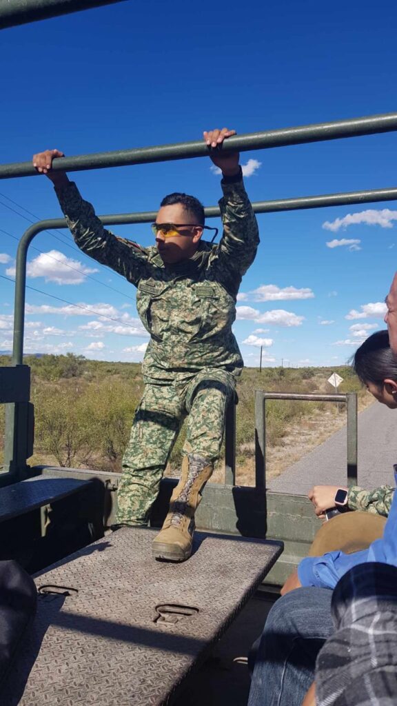 Siguiendo las indicaciones de nuestros anfitriones, nos trasladamos en un camión militar hacia las instalaciones de «La Cofradía» para presenciar el entrenamiento previamente mencionado. Los asientos metálicos en el camión nos dieron una idea de lo duro y difícil que son los largos viajes para nuestros soldados.