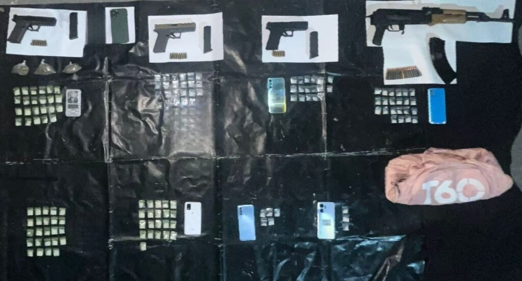 Con trabajos iniciados por el Centro Nacional de Fusión de Inteligencia (CENFI) dependiente del Centro Nacional de Inteligencia (CNI) y en coordinación con la Fuerza Civil de Nuevo León (FCNL), durante patrullajes de vigilancia se logró ubicar a José “N” acompañado de siete personas a bordo de dos vehículos, quienes fueron detenidos por las autoridades policiales en flagrancia delictiva asegurándoles droga, 4 armas de fuego, 4 cargadores, 36 cartuchos y dos vehículos en la colonia Cumbres Élite 4/o. Sector de Monterrey, N.L., donde personal de la Guardia Nacional y del Ejército Mexicano proporcionaron seguridad periférica.