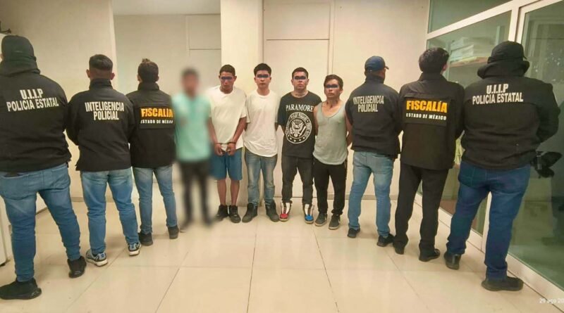 Los asegurados fueron identificados como Noé “N”, de 24 años; Nezahualcóyotl “N”, de 25 años; Andrés “N”, de 29; Octavio “N”, de 18; y un menor de edad, cuya identidad se reserva.