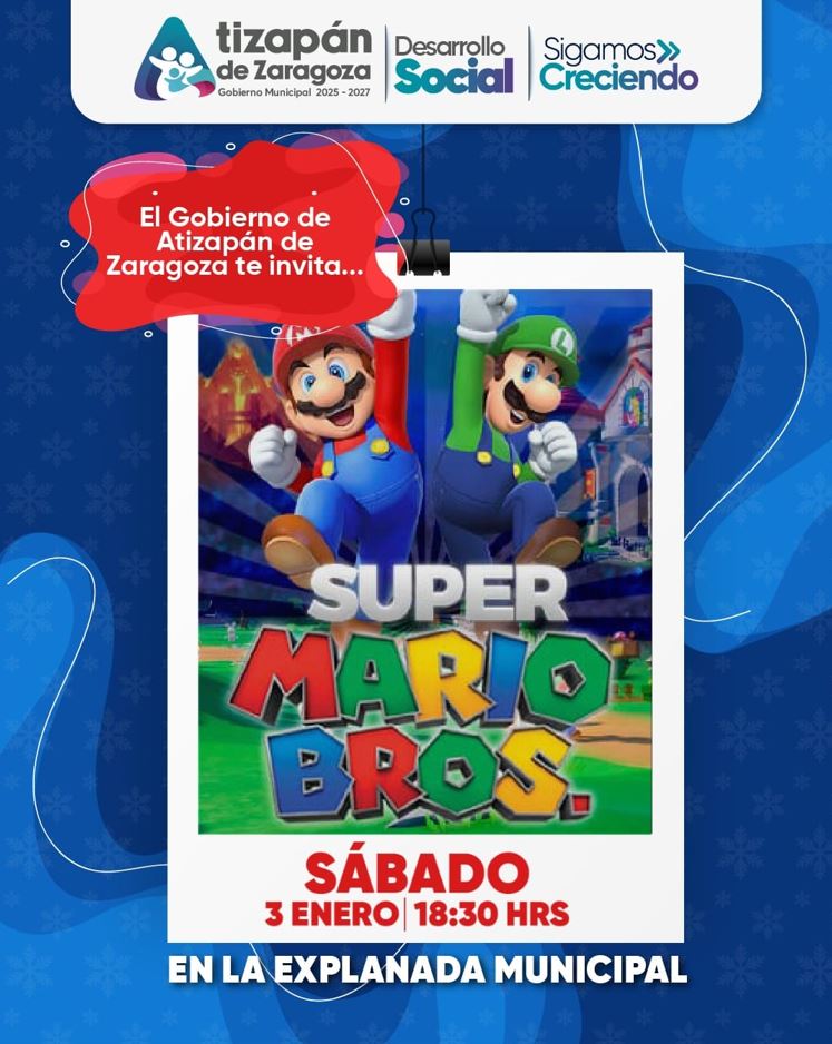 Este fin de semana, la diversión se hará presente en la Explanada Municipal, con la presentación de Súper Mario Bros, quien a partir de las 18:30 horas de este sábado 3 de enero estará llenando de diversión la tarde noche de los asistentes a este espectáculo.