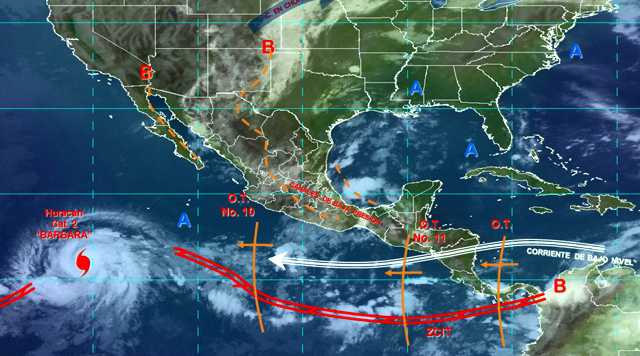Ciudad de México.– El pronóstico meteorológico para hoy es de lluvias puntuales muy fuertes en Chihuahua, Durango, Jalisco, Colima, Michoacán,